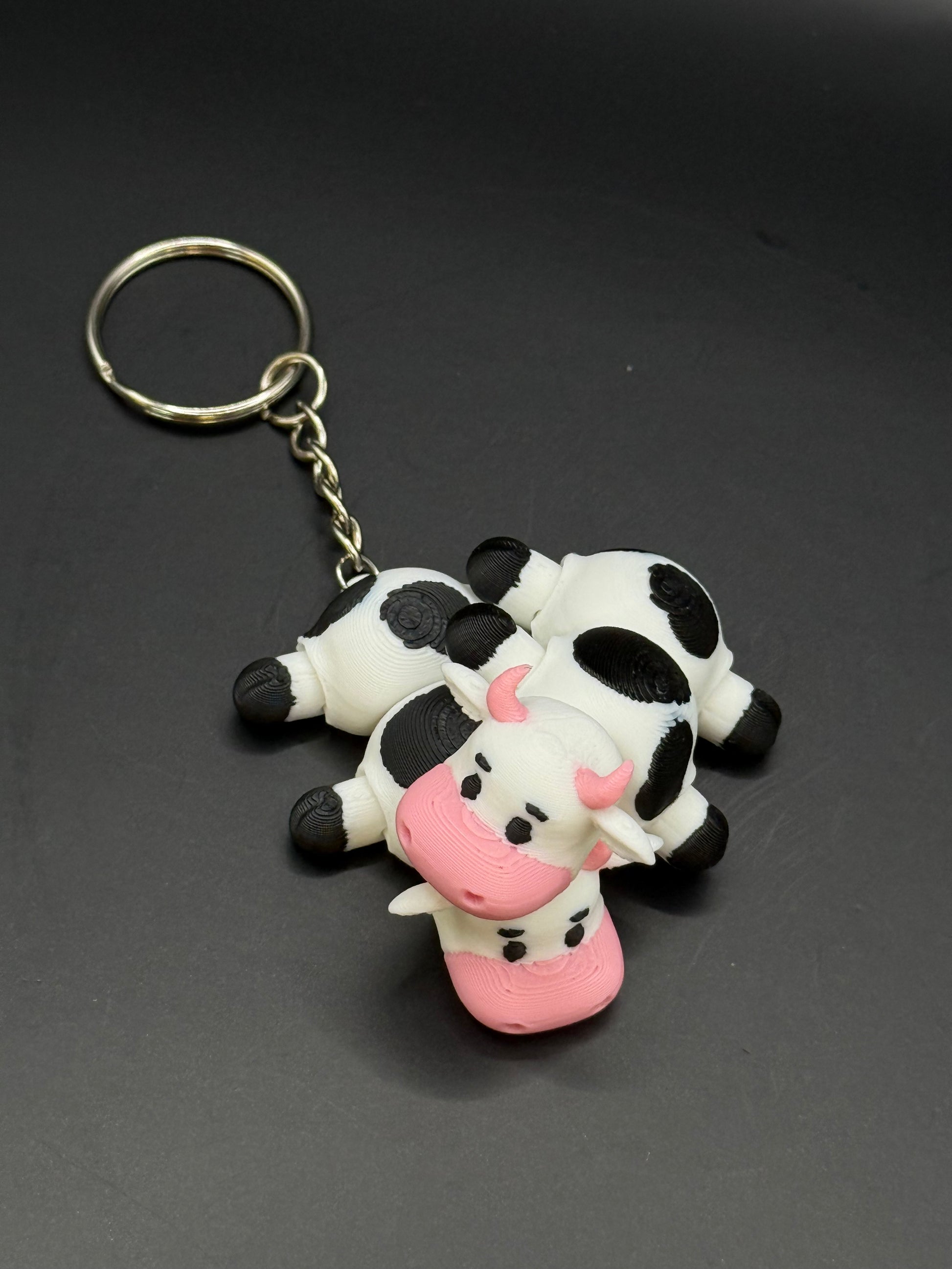 Denne bedårende lille kua ser ut som den har tatt seg en velfortjent cow-pause! Med sin søte, liggende positur, rosa mule og lubne kropp, er det den perfekte lille følgesvennen – enten som pynt eller som nøkkelring.